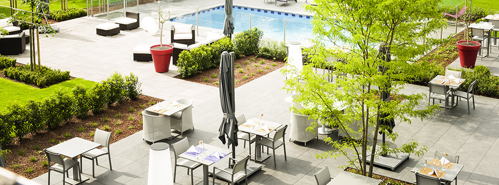 Hôtel avec restaurant, piscine, salle de réunion et de grandes chambres pour voyager avec les enfants.